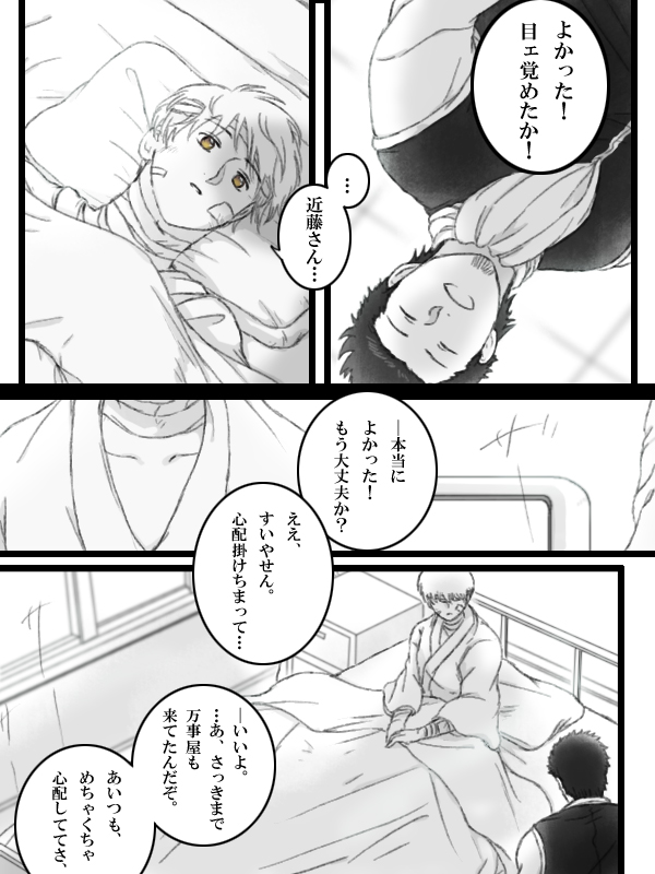 雨の中の銀時さんの所に行った沖田くんでした。